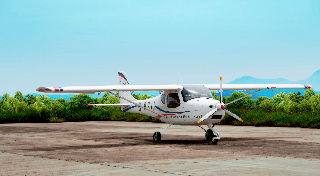AG50是一款上单翼斜撑杆式固定翼飞机,主要面向飞行培训、航空娱乐、私人飞行等客户。整机标配Galaxy High Technology公司的GRS 6-600型整机降落伞,12寸大屏综合航电系统。采用全复合材料机身,一体化成型,碳纤维复合材料承力结构,轻便耐用。固定式前三点起落架设计,复合材料板簧主起落架,轻松适应训练中频繁起降要求,强化复材防火抗坠毁座舱,防火抗冲击,全方位守护乘员安全。AG50配备Rotax 912 ULS活塞发动机,可使用95号及以上非乙醇普通汽油,显著降低使用成本。