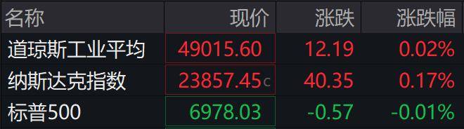 ►►当地时间周三,美股三大股指分化,截至收盘,道指涨0.02%,纳指涨0.17%,标普500指数微跌0.01%,盘中历史首次突破7000点大关。
